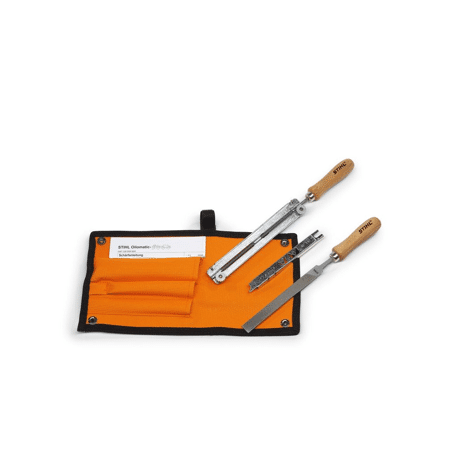 | Bestaande uit vijlhouder met ronde vijl, platte vijl en vijlkaliber in een robuuste tas. Verschillende versies. |